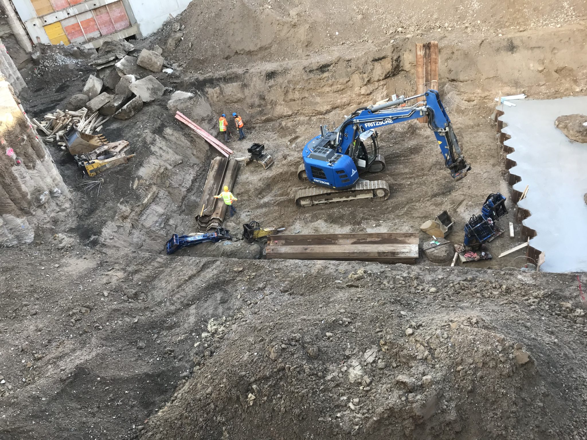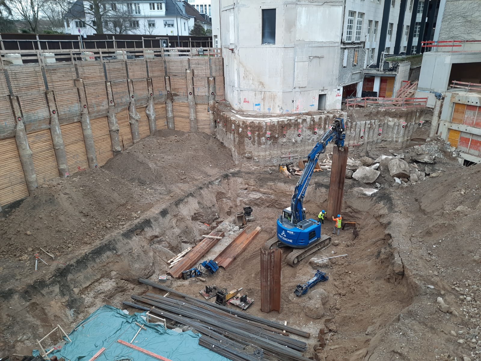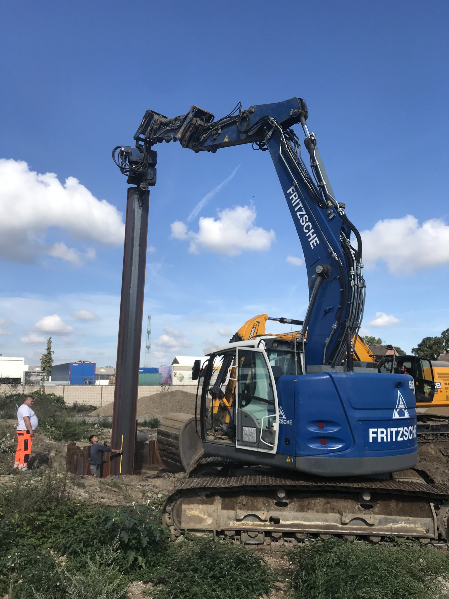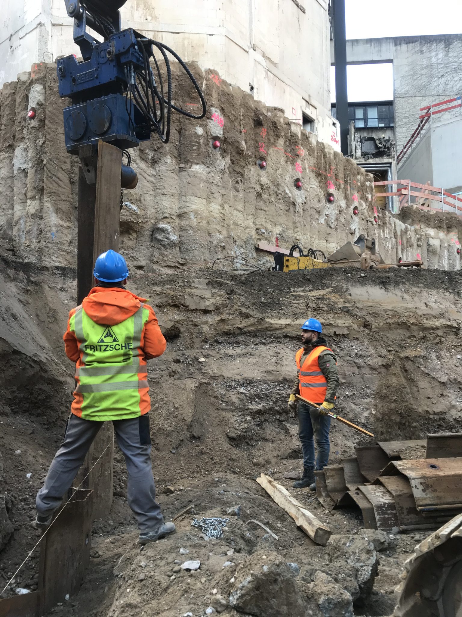 Durch den Einsatz von hochfrequenten Anbaurüttlern mit verstellbarem statischen Moment entstehen bei den Einbauarbeiten der Spundbohlen nur geringe Schwingungen, welche das Arbeiten im innerstädtischen Bereich und in Gebäudenähe erlauben.